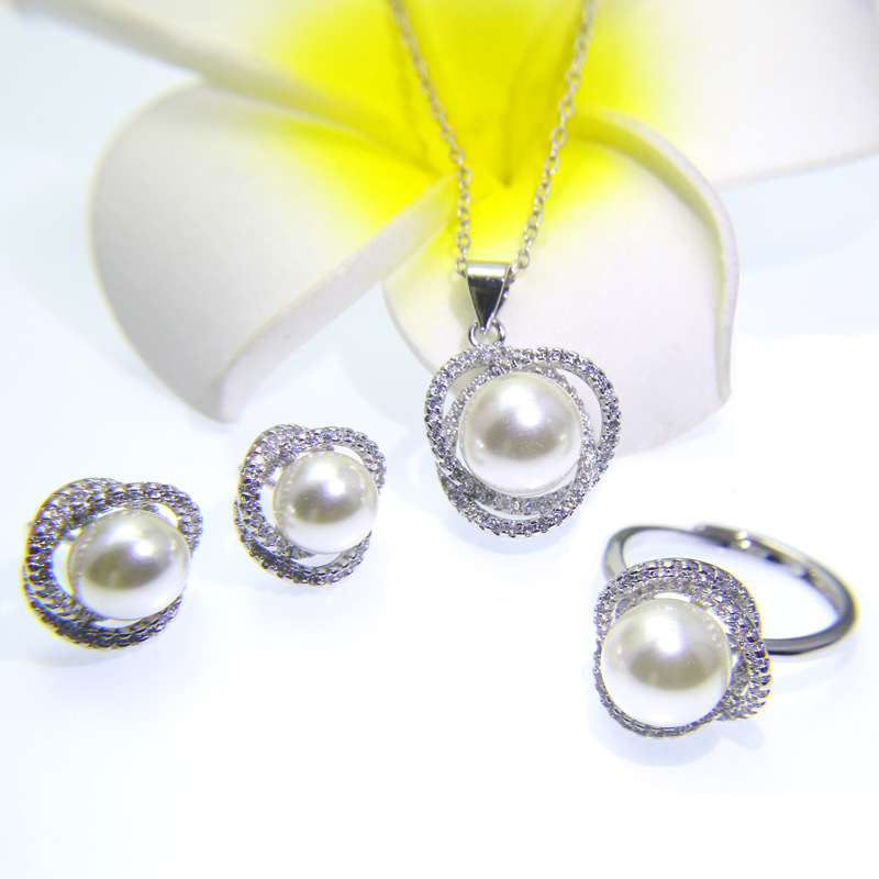 Niche fashion light luxury Joker super flash full zirconium ring pendant necklace suit temperament simple commuter earrings wholesale
