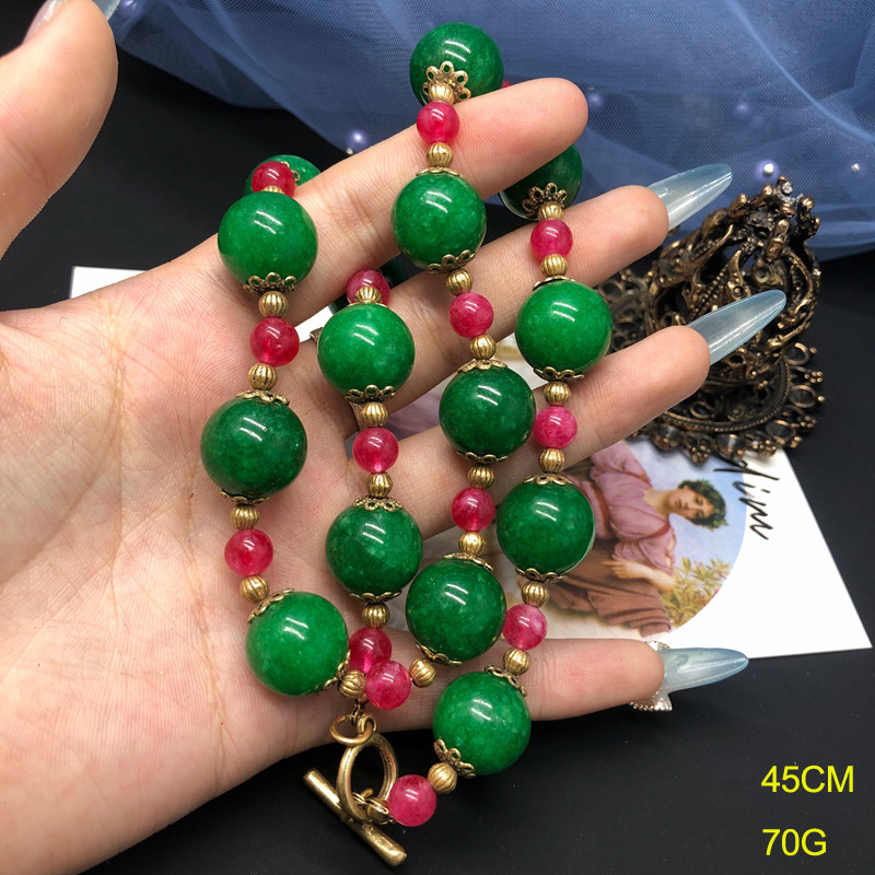 New Chinese Style National Fashion Stone Beaded Necklace Bracelet Earrings suit Cheongsam Accessories Gold Plated Fashion Middle Ancient Women