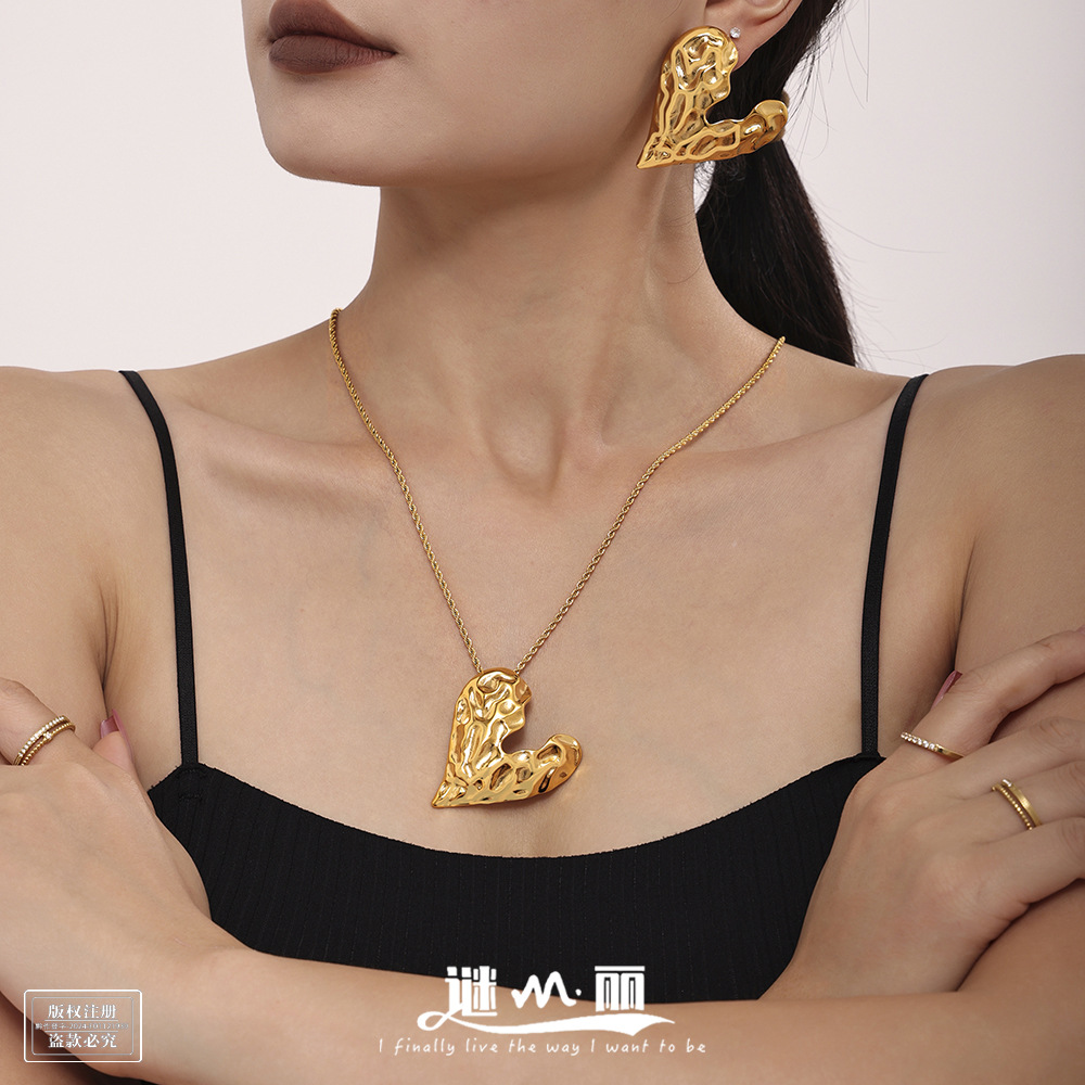 Enigma Ins Golden Age Irregular Karst Peach Heart Necklace Earrings Fashionable suit Stainless Steel PVD Gold Plated