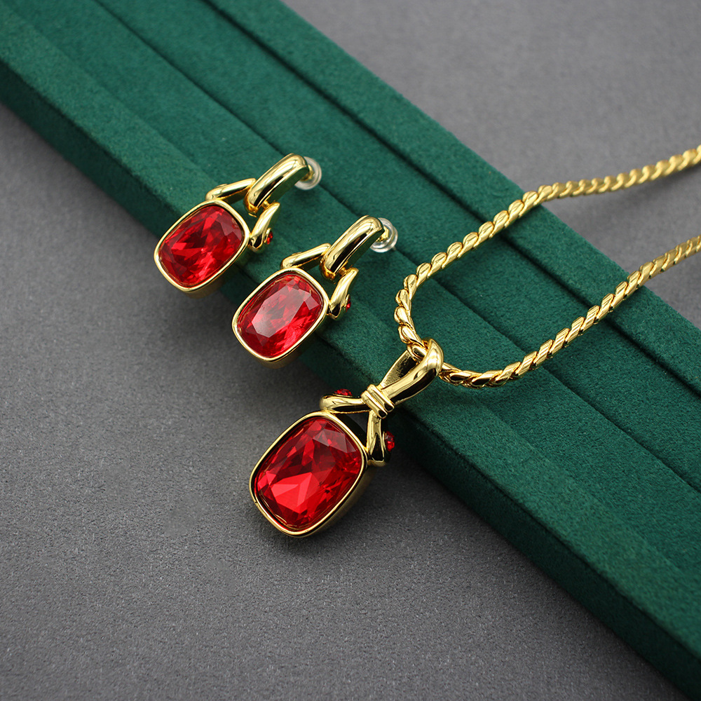 Middle Ancient Red suit Marking Rhinestone New Year Gift Earrings Necklace Copper Plated Gold Square All-Match