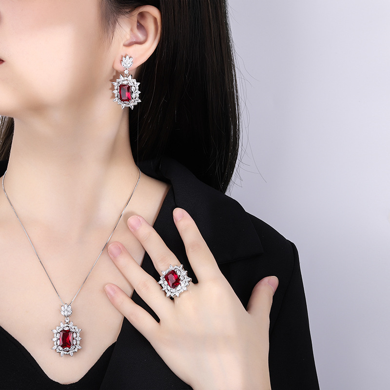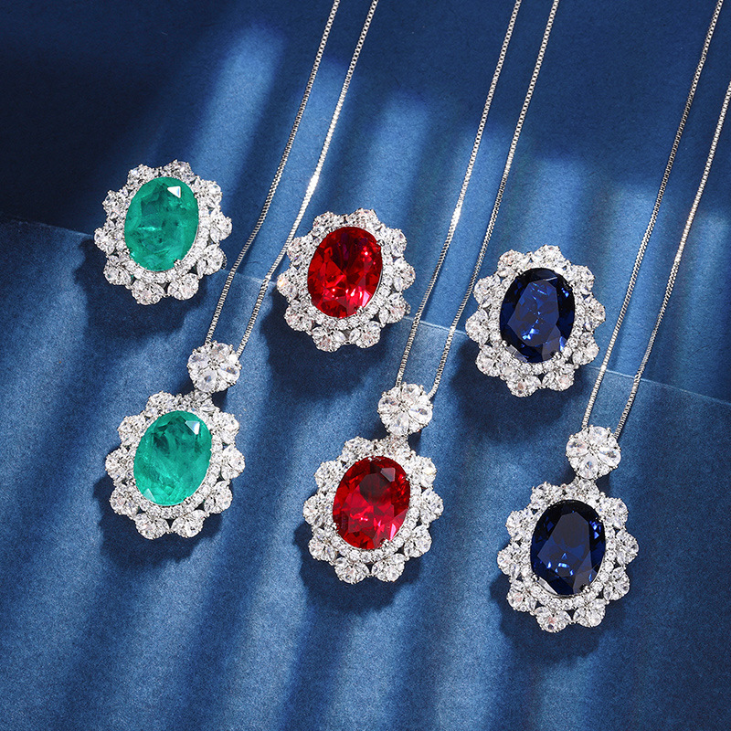 S925 silver needle European and American popular simulation jewelry accessories suit imitation pigeon blood corundum pendant necklace wholesale women