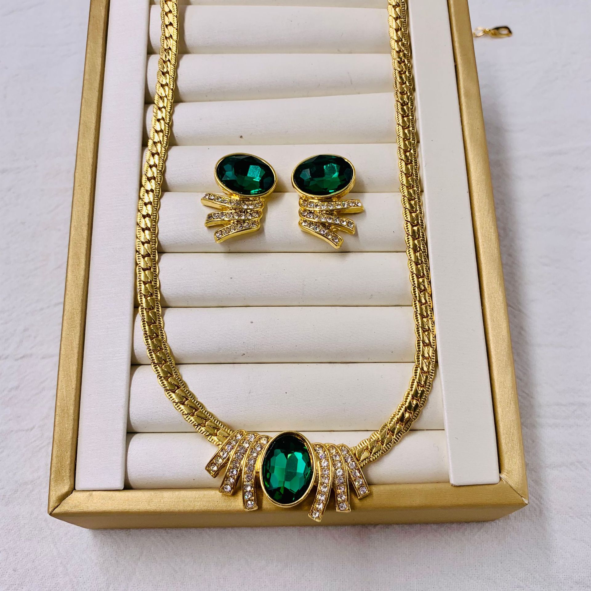 Medieval vintage Western retro marking plating real gold K9 gem emerald suit thick gold factory necklace