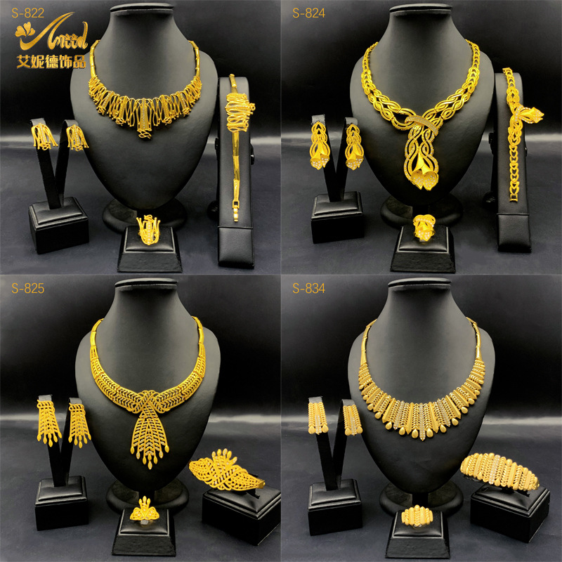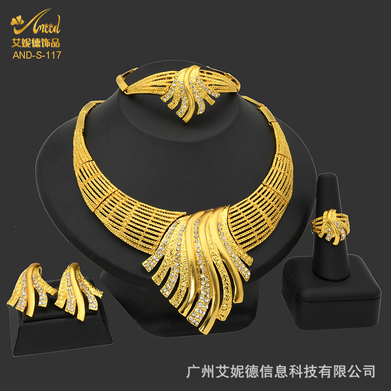 Cross-border European and American bridal jewelry four-piece gold necklace earrings bracelet ring jewelry set manufacturers supply
