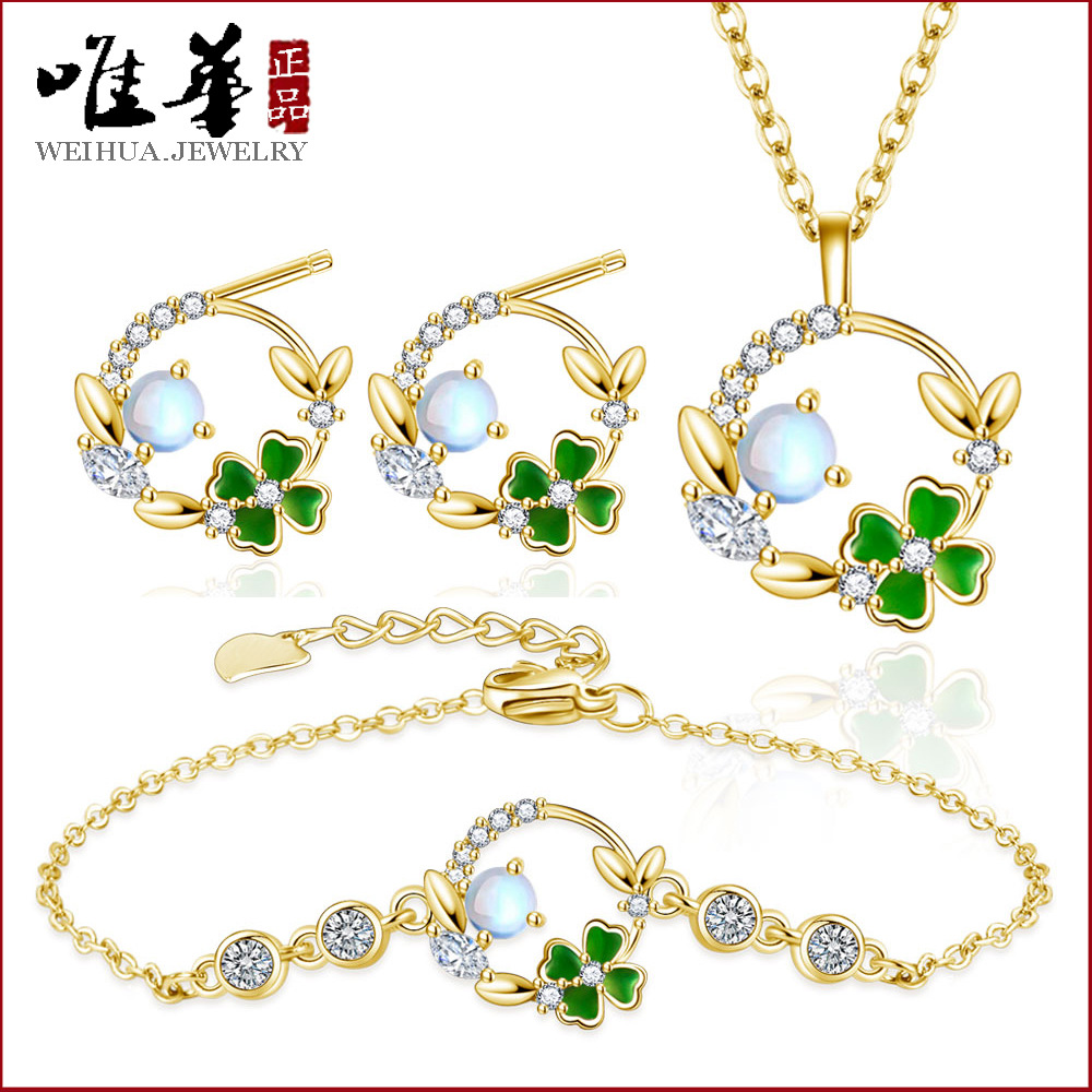 Small fresh personality cherry blossom pendant necklace earrings set new trend green leaf bracelet cute earrings clavicle chain