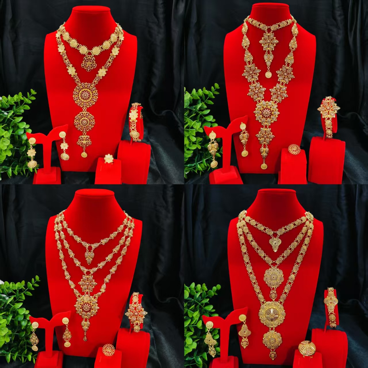 Dubai Bride 24K Gold-Plated Necklace Bracelet Earrings Ring Jewelry Set African Women's Jewelry Four-Piece Set