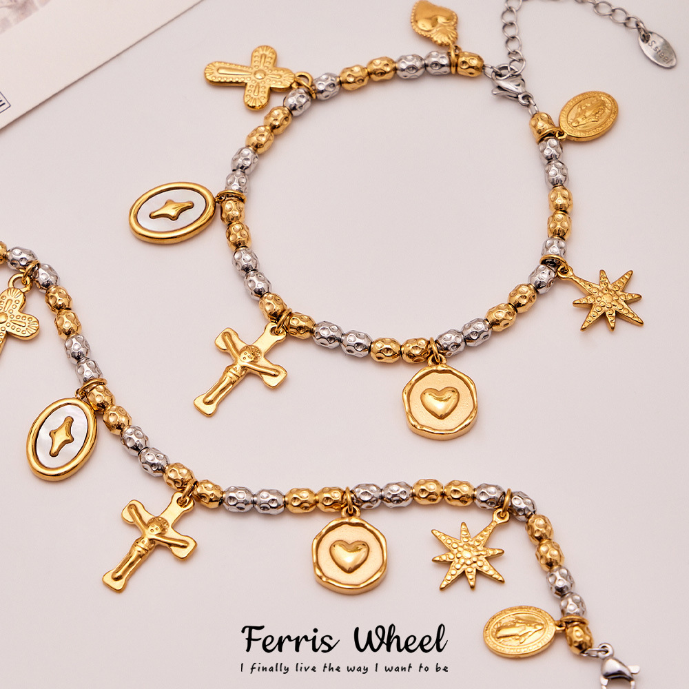 Ferris Wheel European and American Cross-Border Stainless Steel Plated 18K Real Gold DIY Multi-Pendant Necklace Bracelet Color Matching Jewelry Set for Women