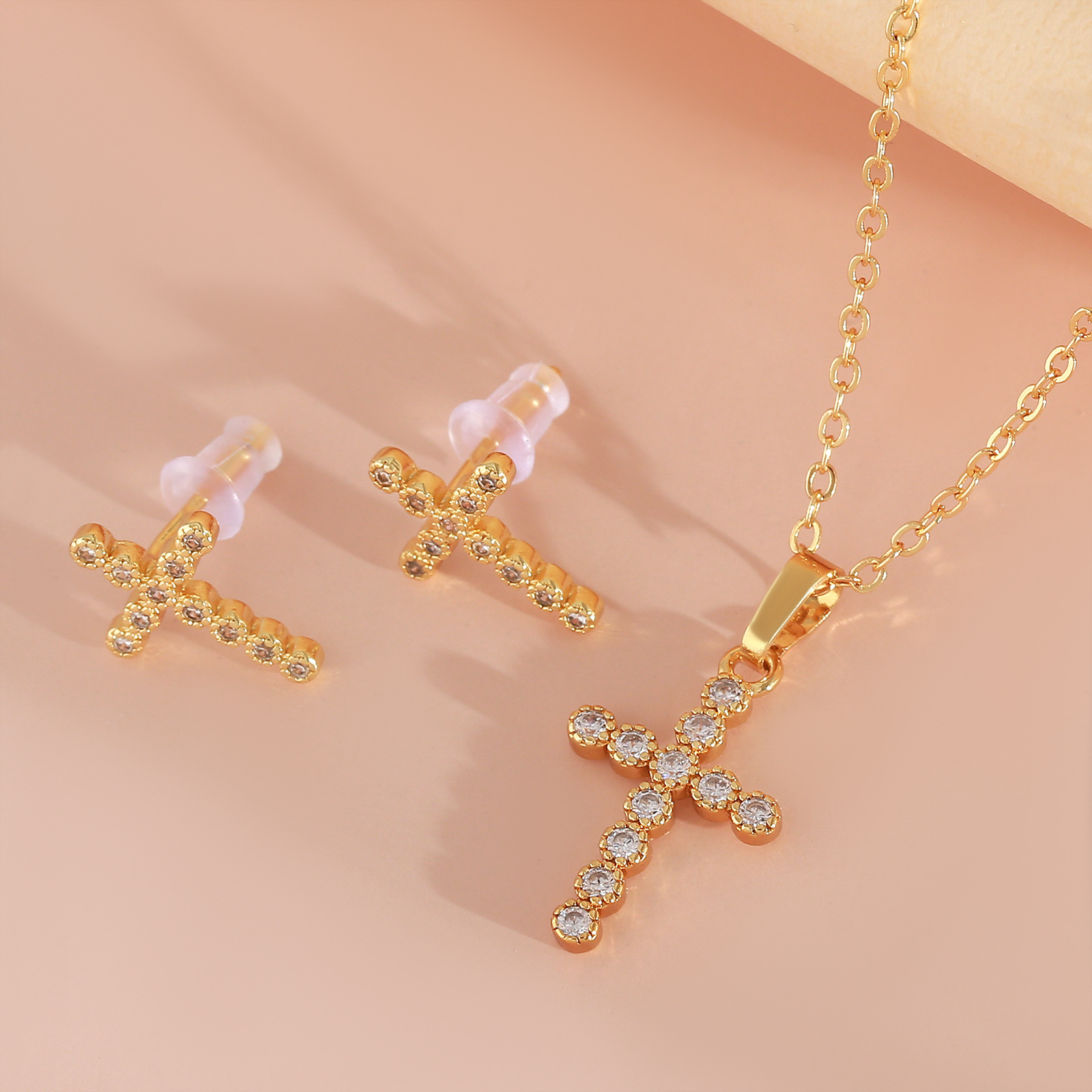 Jewelry Set for Women: Gold-Plated Copper Cross Necklace, Niche Design, Fashionable and Versatile Pendant, Cross Earrings, Ear Accessories