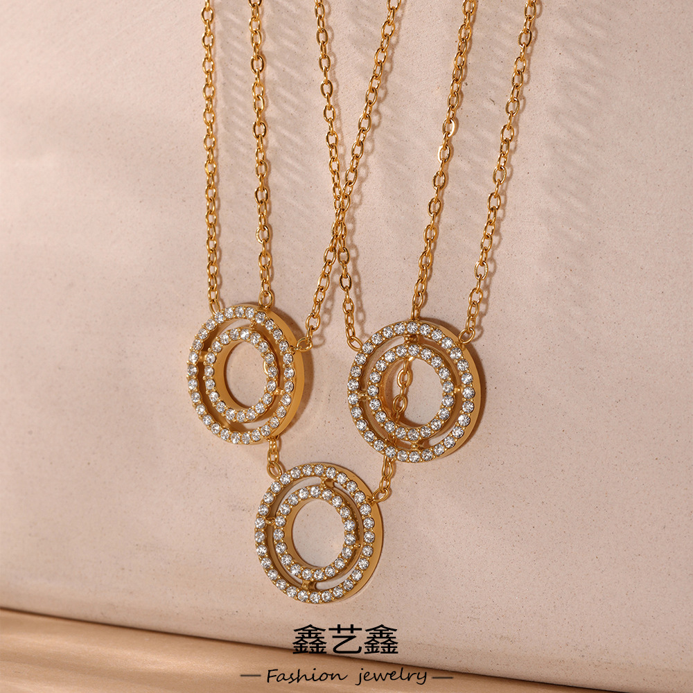 Xinyixinx Super Flash 5A Zircon Full Diamond Double Ring Circle Bracelet Necklace Set Stainless Steel Material Plated with 18K Real Gold