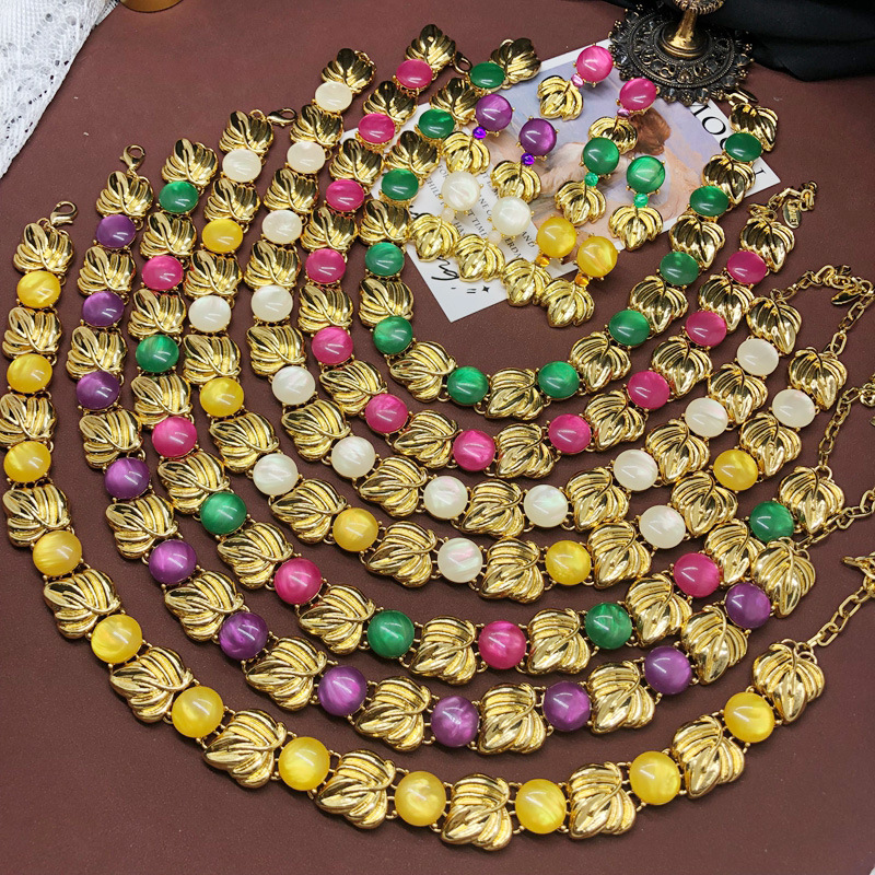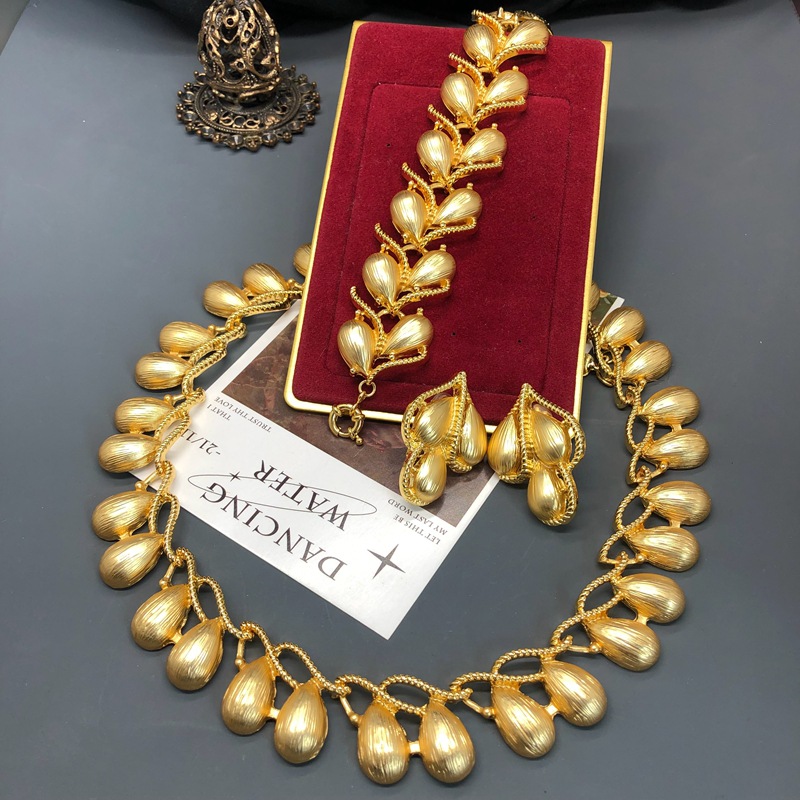 European and American Retro Style Jewelry Plated with Real Gold and Gold Drops Design Necklace Bracelet Earrings Ear Clip suit Temperament All-match