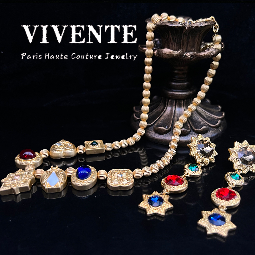 Gaoding Vintage suit vintage Baroque Copper Plated Real Gold Brushed Color Zirconium Antique Marking Necklace Earrings