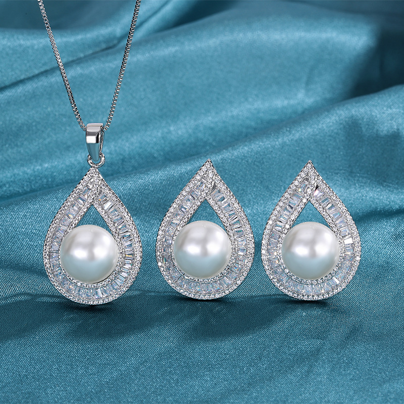 Copper Gold-Plated Live-Stream Imitation Natural Pearl Women's Fashion High-End Set Pendant Earrings Wholesale Jewelry in Stock