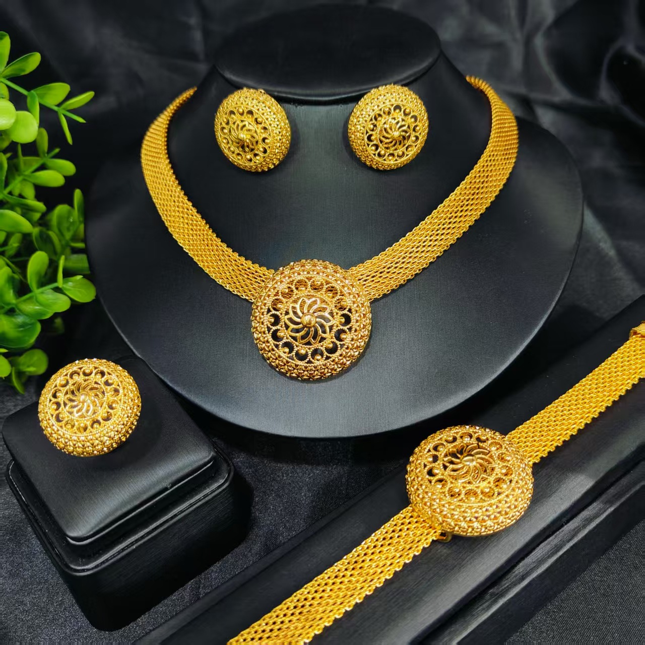 24k Gold Plated Necklace Earrings Ring Bracelet suit Middle East Dubai India Nigeria Bridal Jewelry in stock