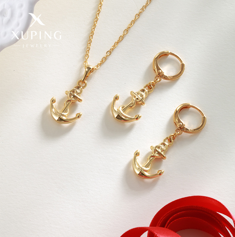 Xuping fashion rope anchor necklace pendant earrings suit imitation gold light luxury exquisite design jewelry