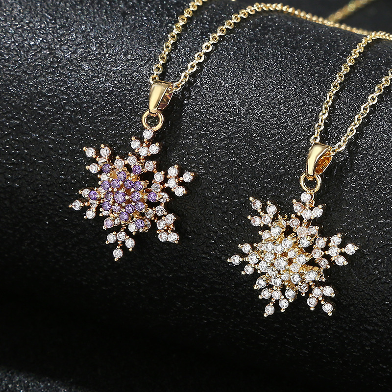 European and American Copper Zirconium Plated Real Gold Rotatable Snowflake Eding Necklace Fashionable Distinctive Clavicle Chain Versatile Earrings Set