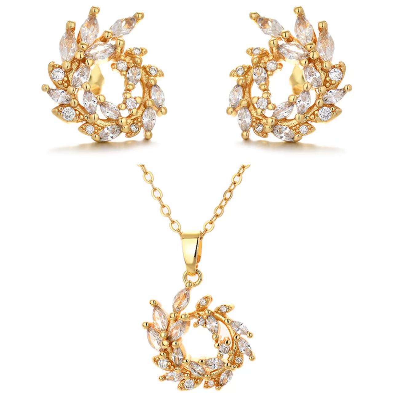Popular Luxury Color-Preserving Real Gold Necklace Pendant Earring Set, High-End and Elegant Women's Simple Clavicle Chain Jewelry
