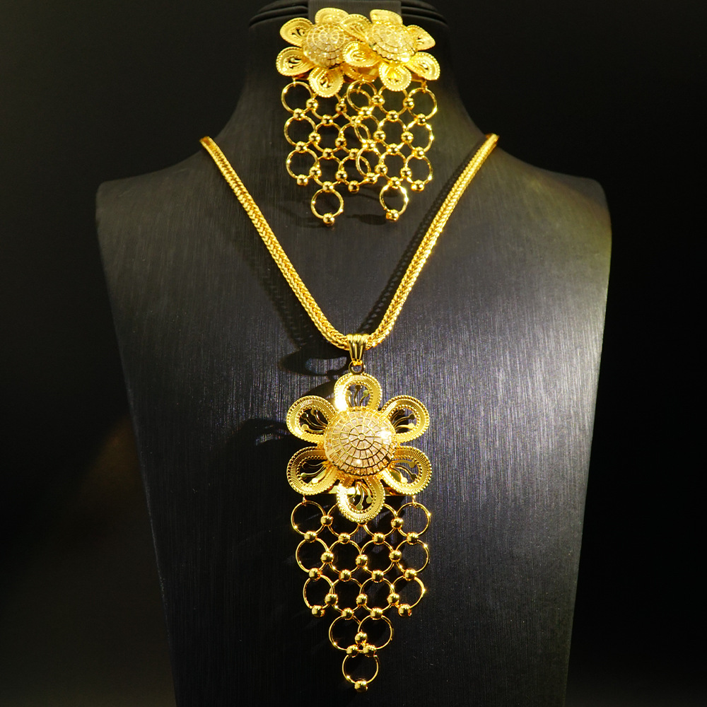 New Middle Eastern Jewelry Gold-Plated Necklace Set African Jewelry Two-Piece Set Bridal Jewelry Dubai Necklace