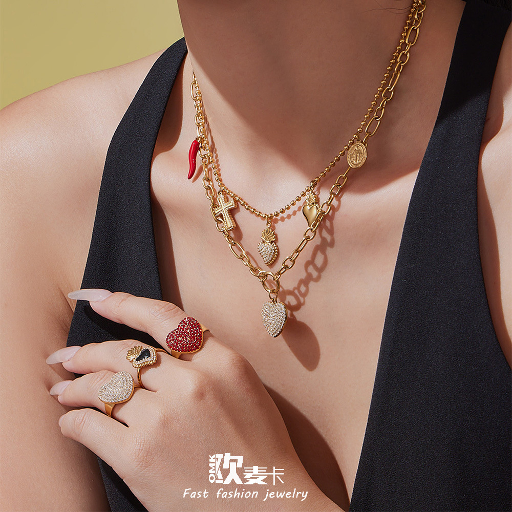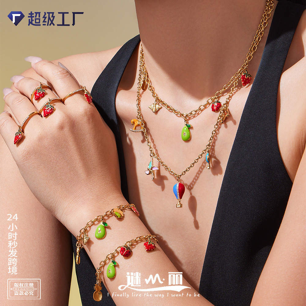 Mili Dopamine DIY Fruit Zircon Multi-Pendant Oil Drop Jewelry Set 18K Real Gold Plated Fashion Cross Accessories