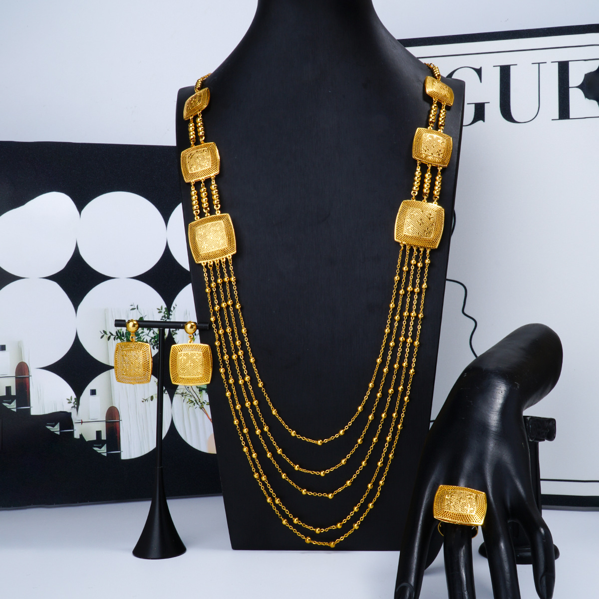 3 Piece Set New Middle East Long Chain Gold Plated Necklace Geometric Necklace Earrings Ring Jewelry suit African Jewelry