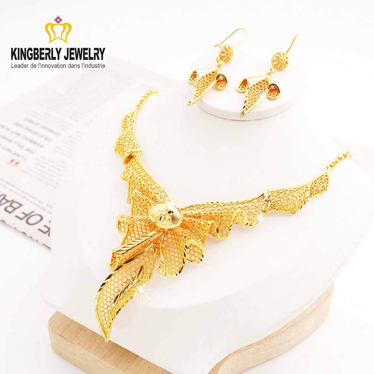Cross-Border Fashion Women's Flower Luxury Set Dubai 24K Gold-Plated Necklace Earrings Copper Jewelry Middle East African Women