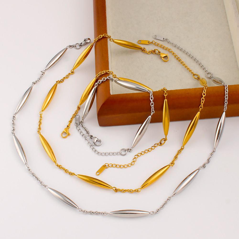 Cross-Border European and American Hot-Selling Internet Celebrity 18K Furnace Real Gold Stainless Steel Clavicle Chain High-End Necklace Bracelet Set for Women