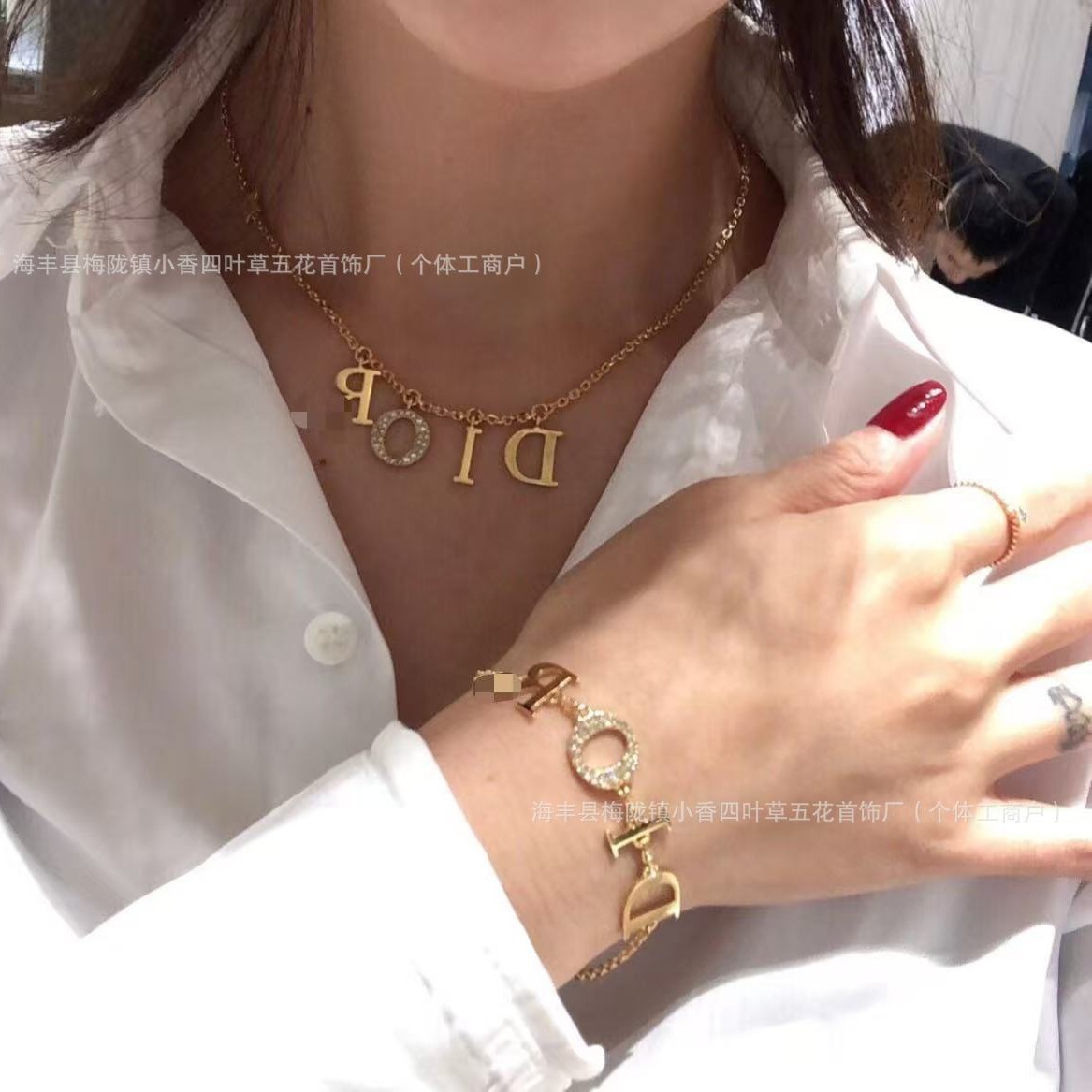 D&G Style Full Diamond O Letter Necklace Bracelet Earring Set Fashion Simple Light Luxury Collarbone Chain for Women