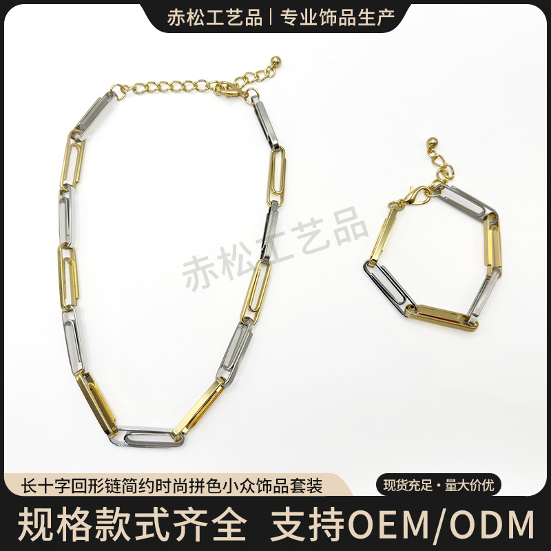 New European and American Long Cross Loop Chain Simple Fashion Color-Blocking Niche Jewelry Necklace Bracelet Set
