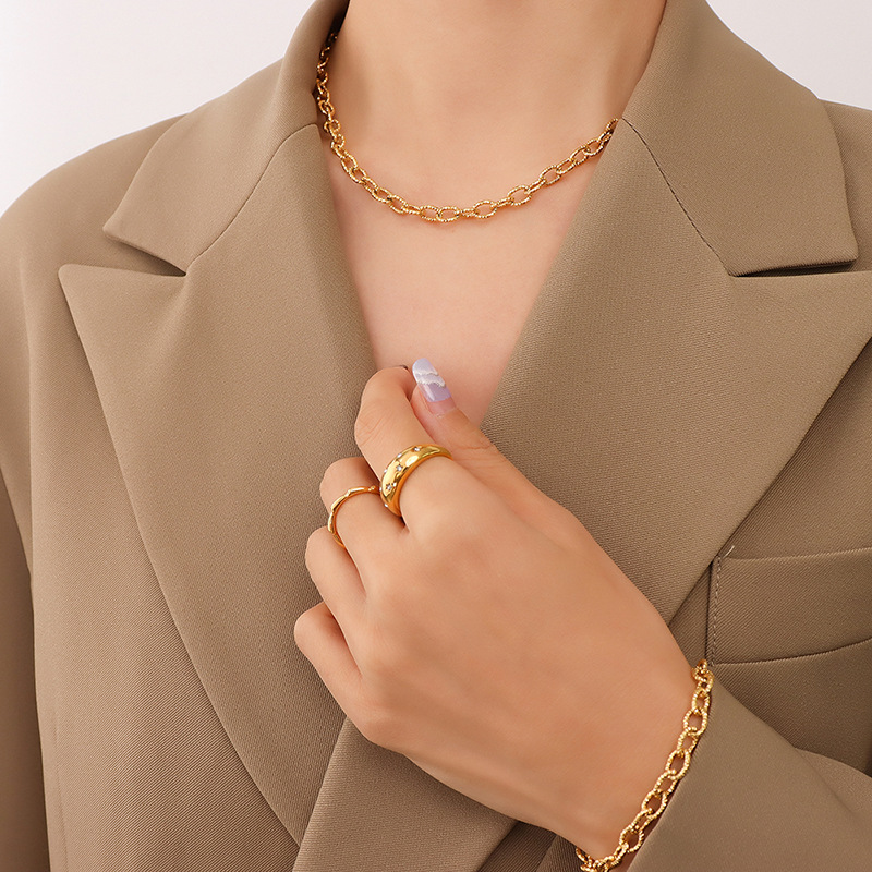 Europe and the United States cross-border hot-selling niche fashion smooth thick chain bracelet stainless steel gold-plated necklace jewelry set