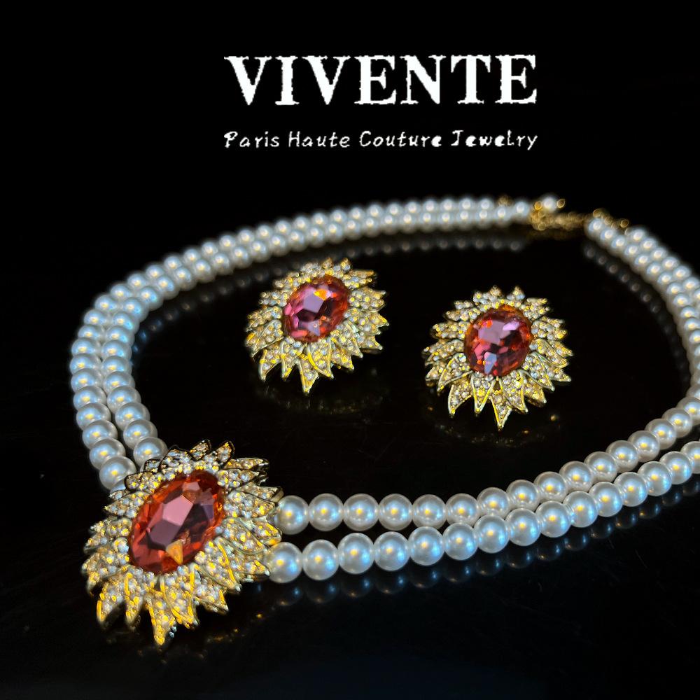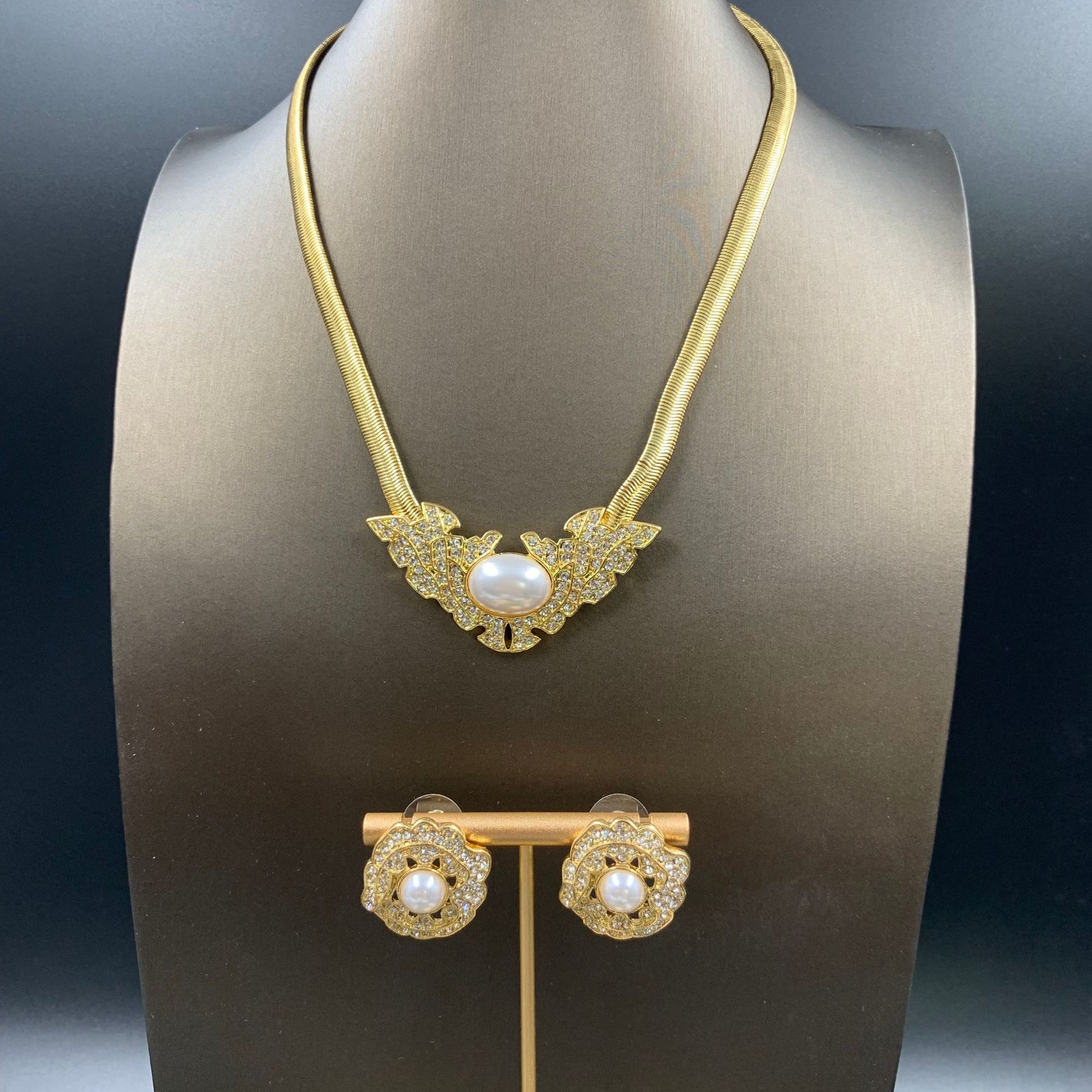 Mid-ancient vintage Western court three-dimensional Pearl full diamond suit electroplated real gold high color retention temperament necklace ear