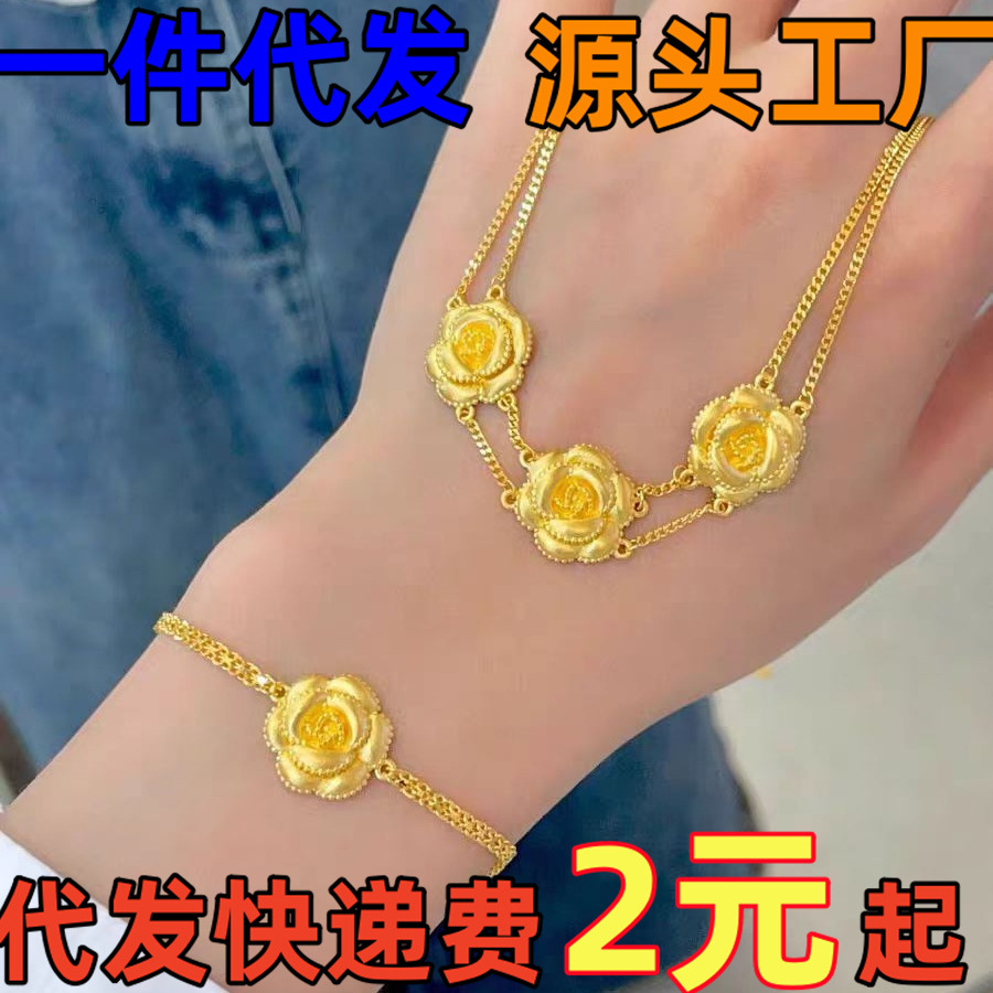 Gold Rose Necklace Bracelet suit Zhou Family Style Fashion Elegant Rose Flower Jewelry for Women