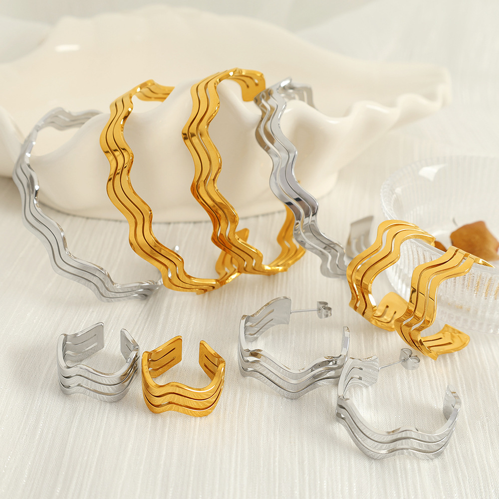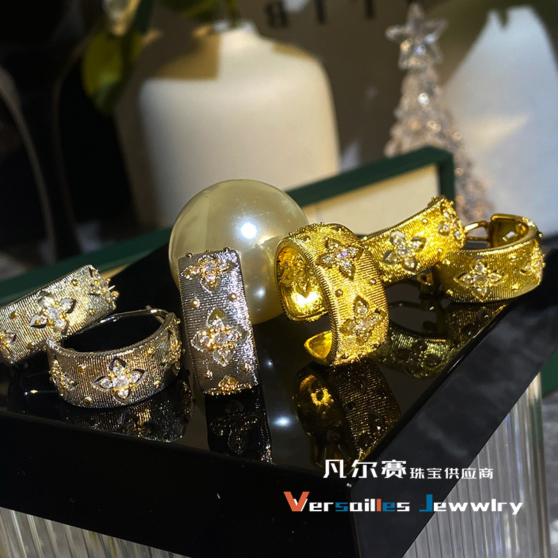 Versa New Italian Brushed Court Style Double Color Gold Craft Cloth Ring Real Gold Electroplated Earrings suit