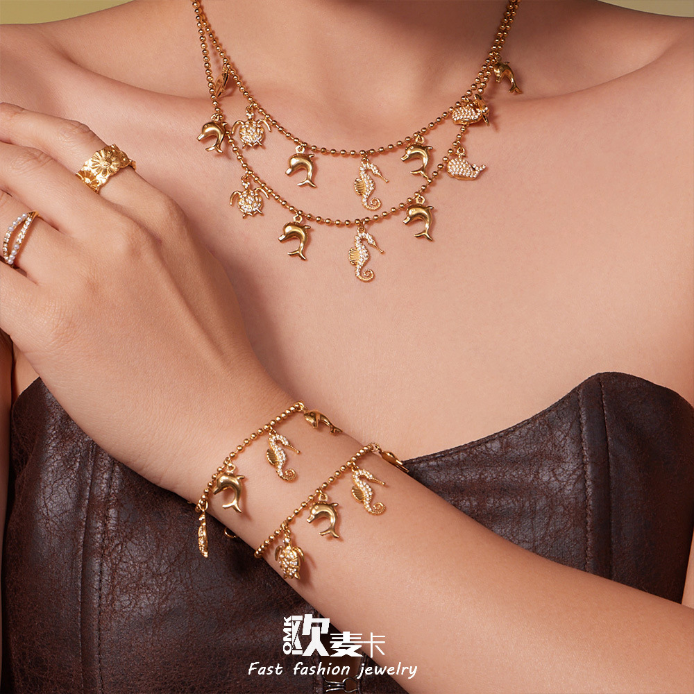 European and American Popular Shell Diamond Necklace Women's Accessible Luxury Fashion Work Clothing Real Gold Electroplating Non-Fading Earrings Ring Set