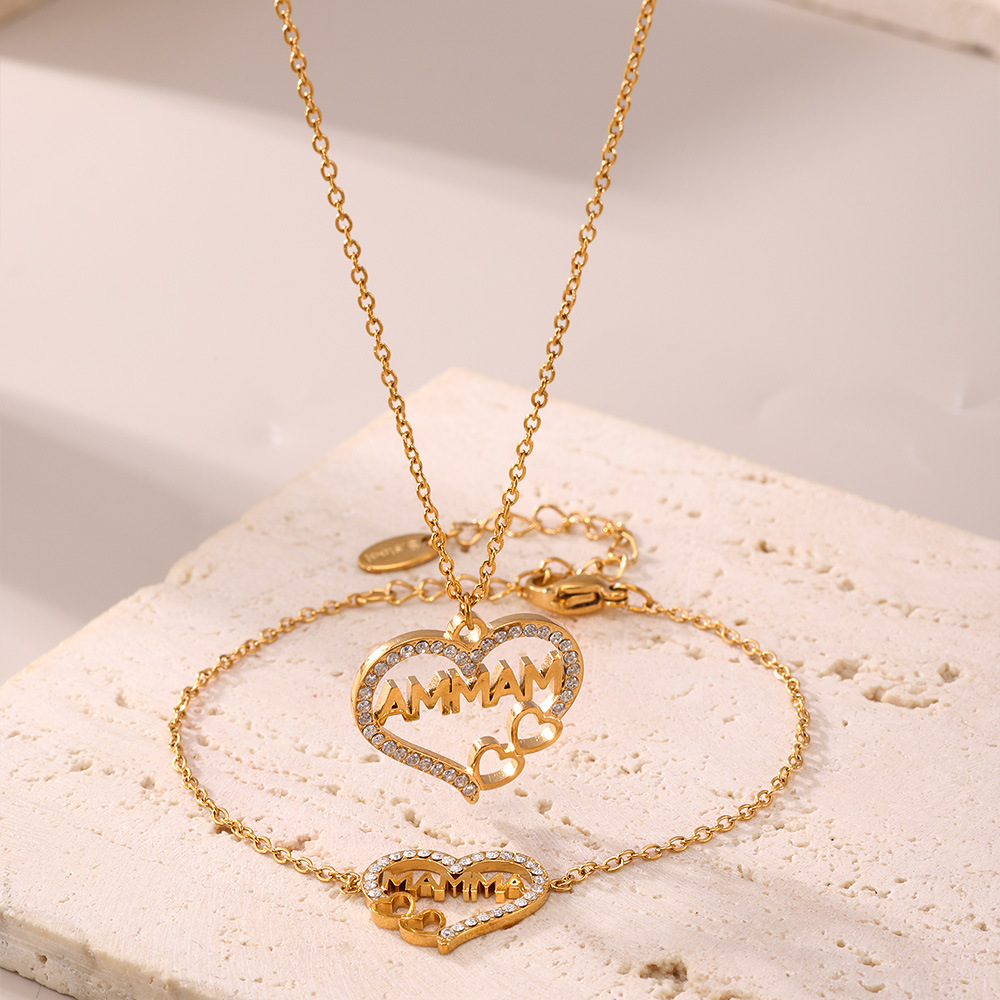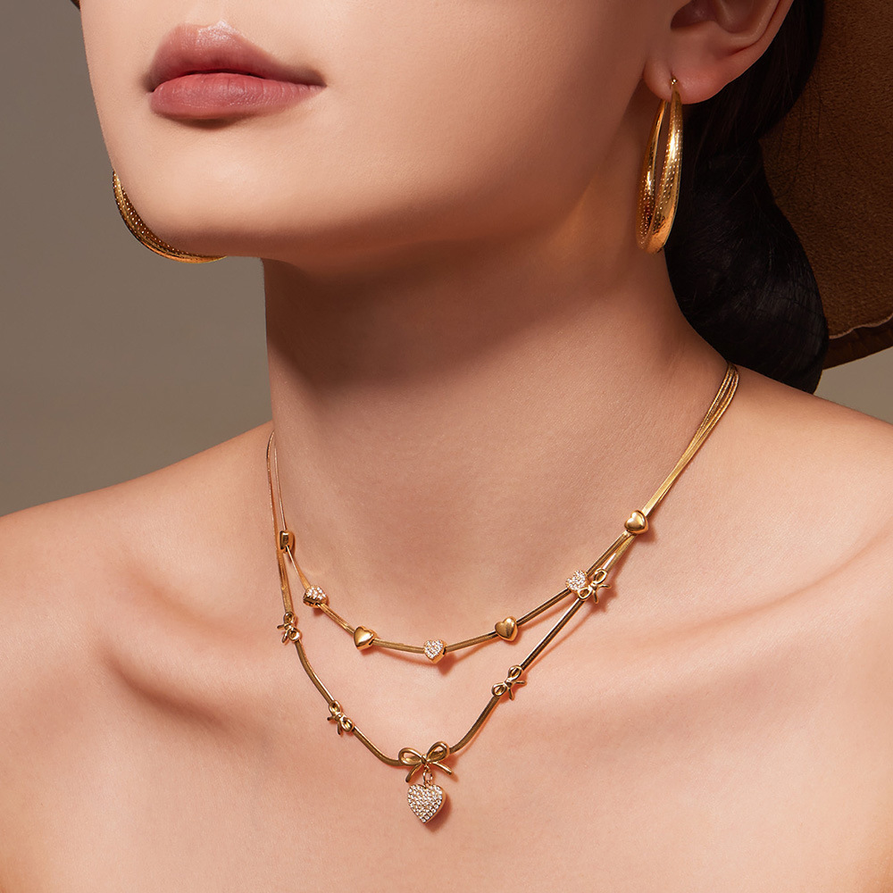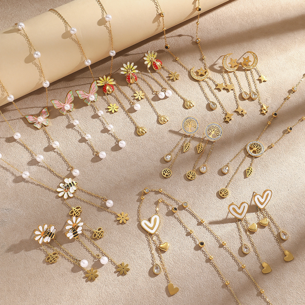 Omaca Golden Years Irregular Karst Peach Heart Necklace Earrings Fashionable Set Stainless Steel Pvd Plated Real Gold