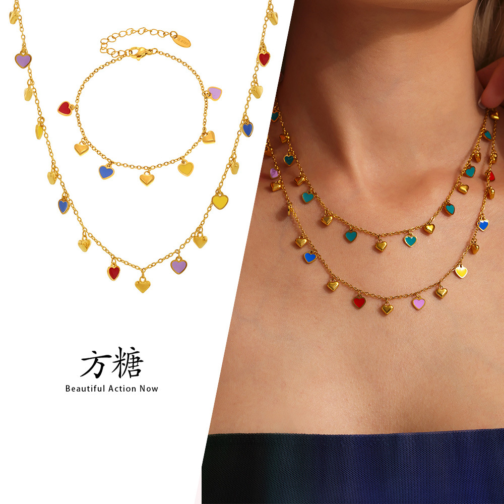 Sugar Cross-border New Niche Love Oil Dropping Tassel Necklace Bracelet Women's Titanium Steel Gold Plated Simple Jewelry suit