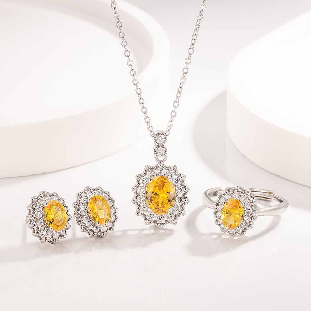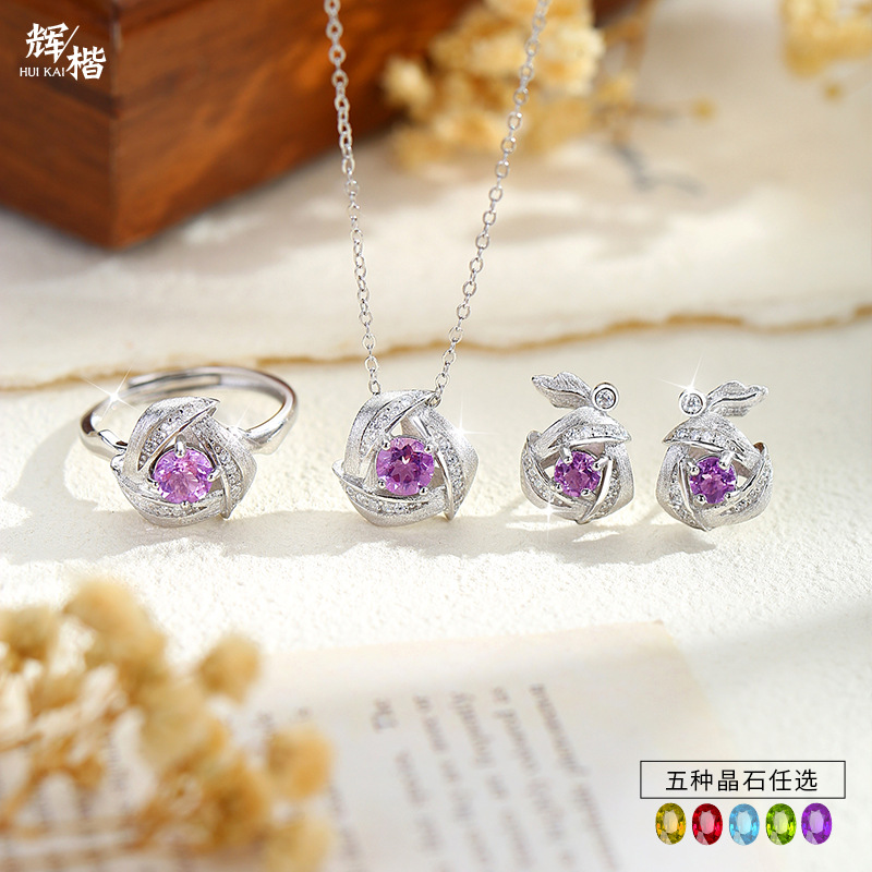 Natural Amethyst S925 Sterling Silver Necklace Women's Brushed Rose High-End Citrine Topaz Jewelry Set