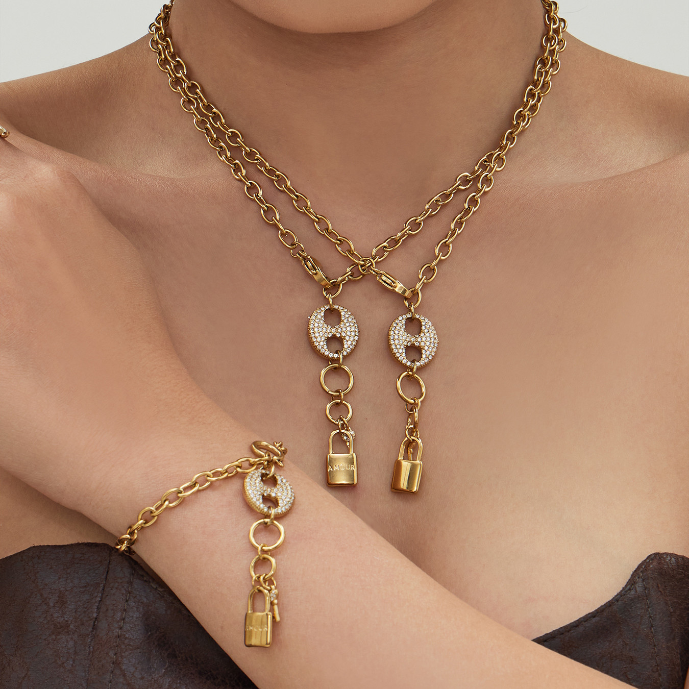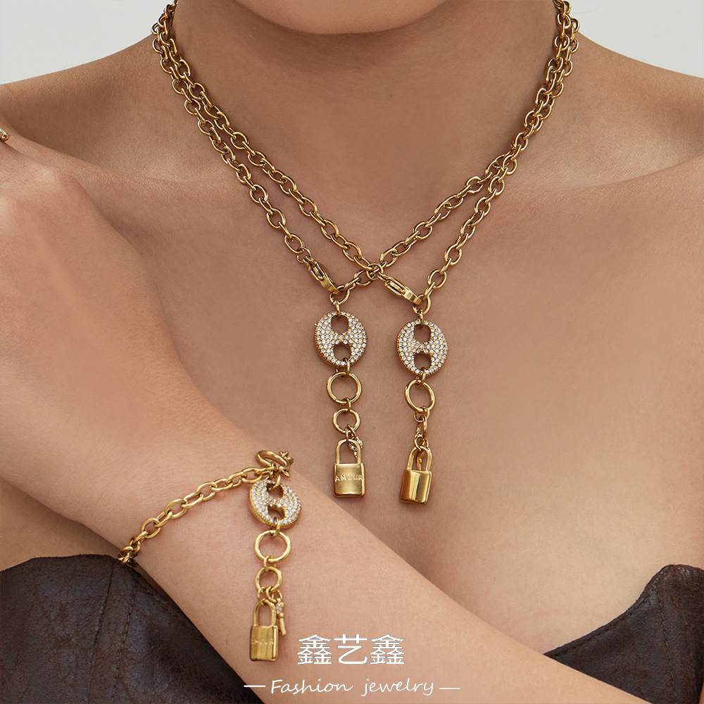 Gold-Plated Necklace Earrings Rose Gold Set Women's Light Luxury Niche Cross-Border Jewelry Women's High-End European and American Hip-Hop Accessories