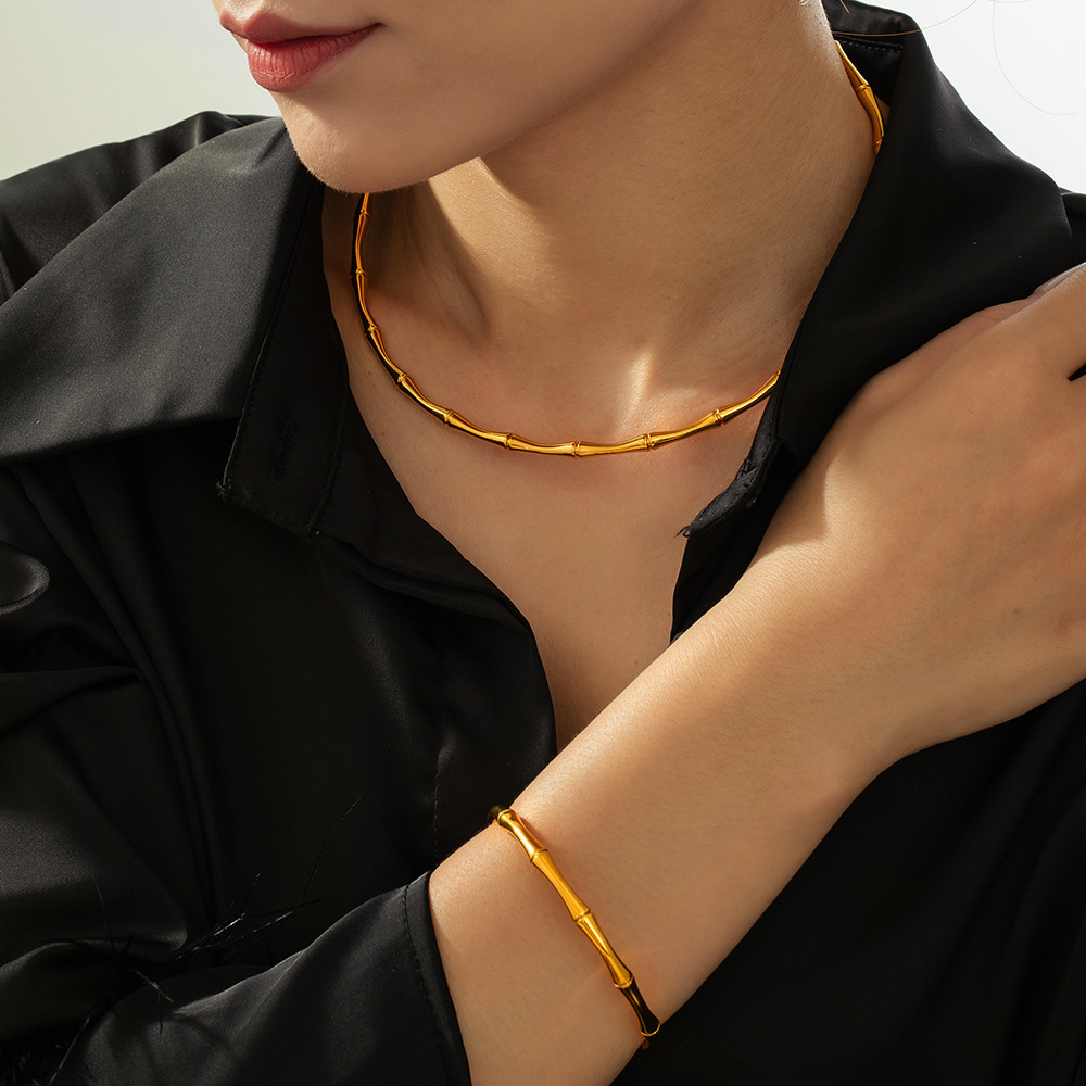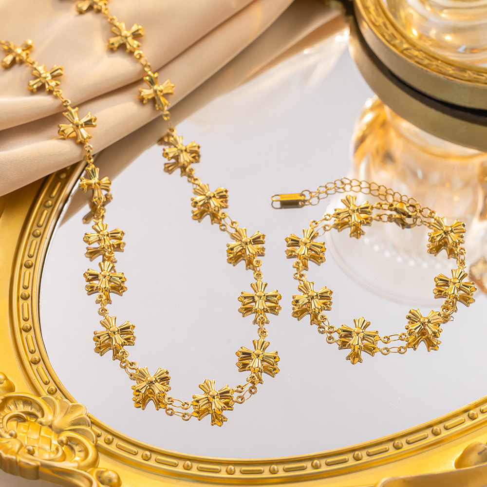 French-Style Light Luxury 18K Gold-Plated Necklace with a Simple and Niche Design, Color-Preserving Minimalist Pattern Cross Bracelet Set