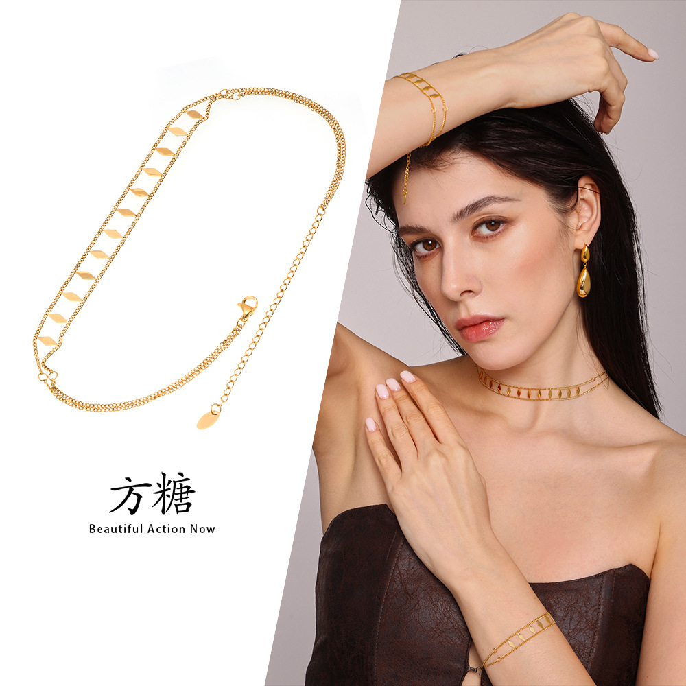 Sugar Double-layer Diamond Sequin Neck Chain Bracelet Titanium Steel Plated 18K Real Gold Women's Ins Cold Style Jewelry suit Accessories