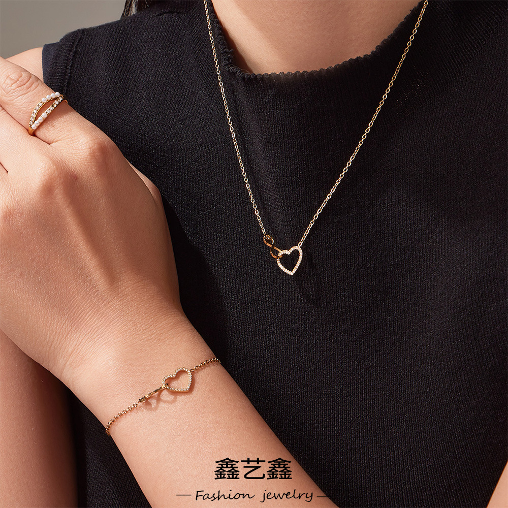 Amazon Foreign Trade European and American Accessible Luxury Zircon Necklace Set Niche High-End Diamond-Encrusted Elegant Versatile Jewelry