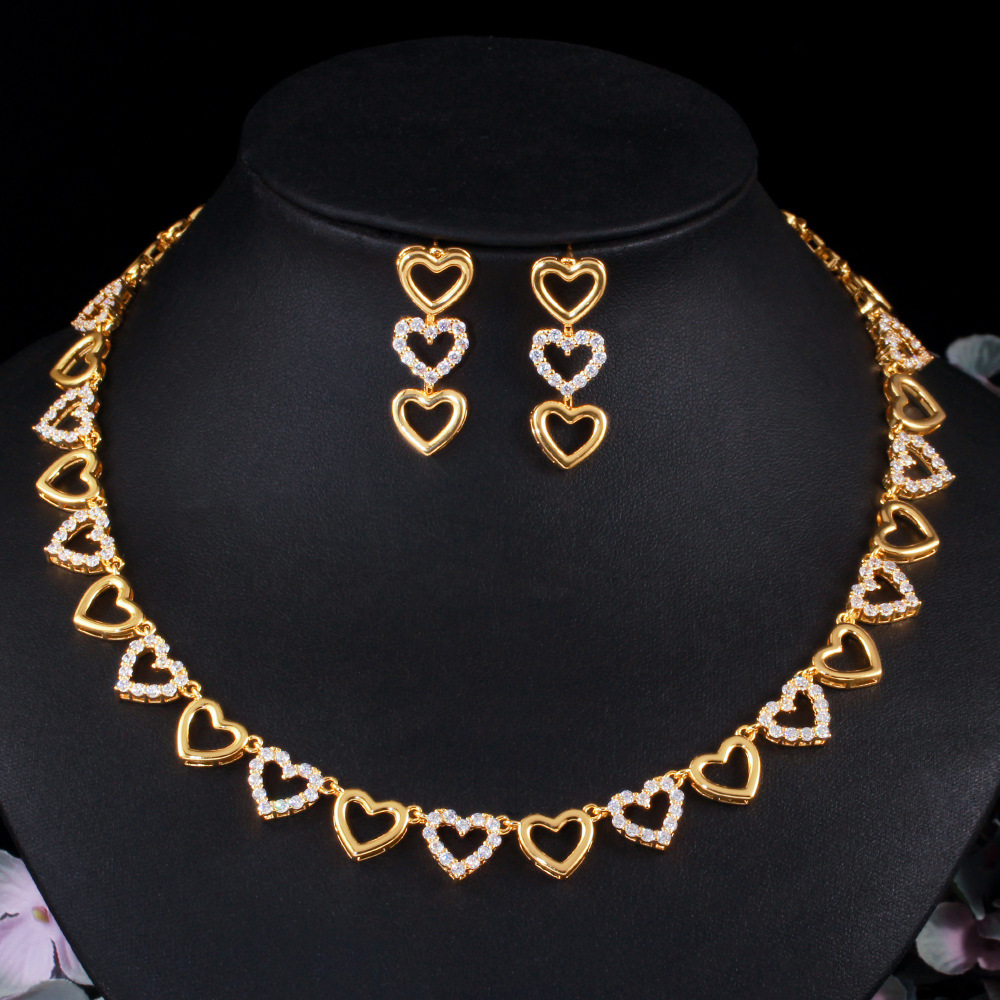 Zircon jewelry suit plating real gold bride wedding dress set chain heart-shaped necklace earrings two-piece manufacturer