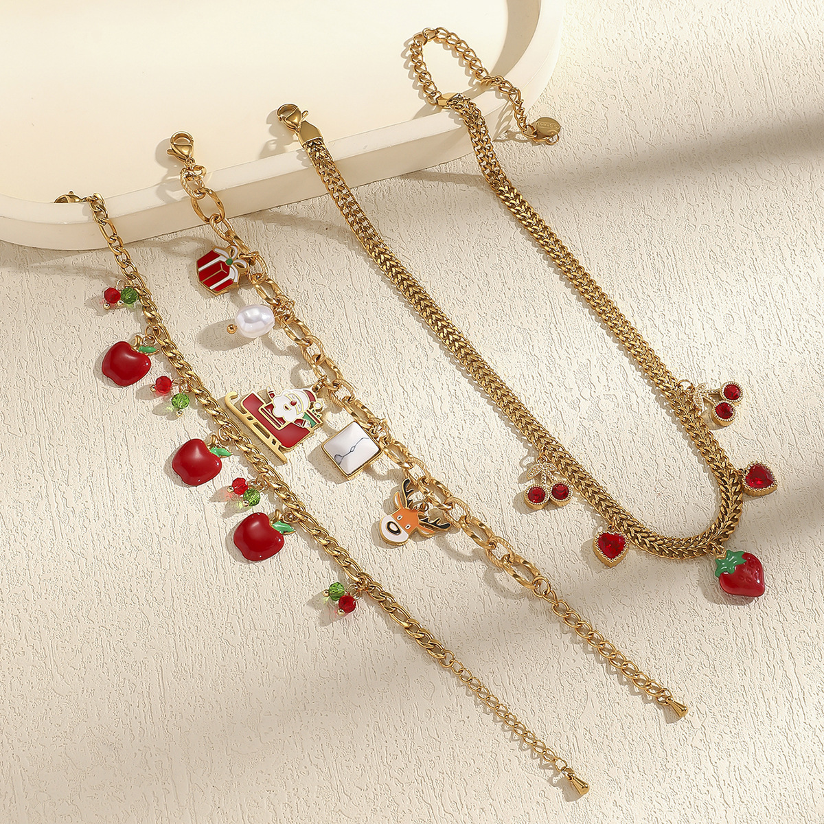 European and American New Sweet Cherry Stainless Steel Necklace and Earrings for Women, Versatile and Fresh, Cross-Border Titanium Steel Jewelry Set