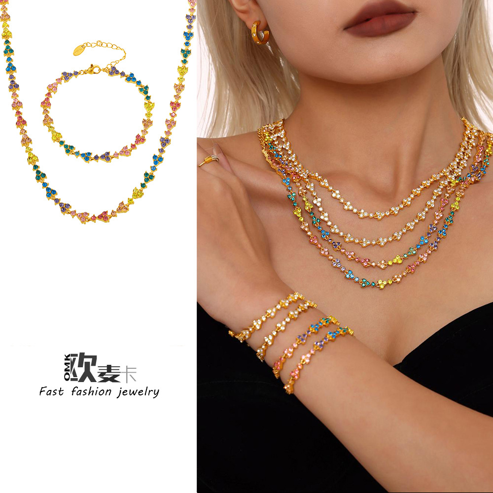 Omega Colored Dopamine Handmade Inlaid Zircon Clavicle Necklace Exquisite Bracelet Stainless Steel Plated Gold suit