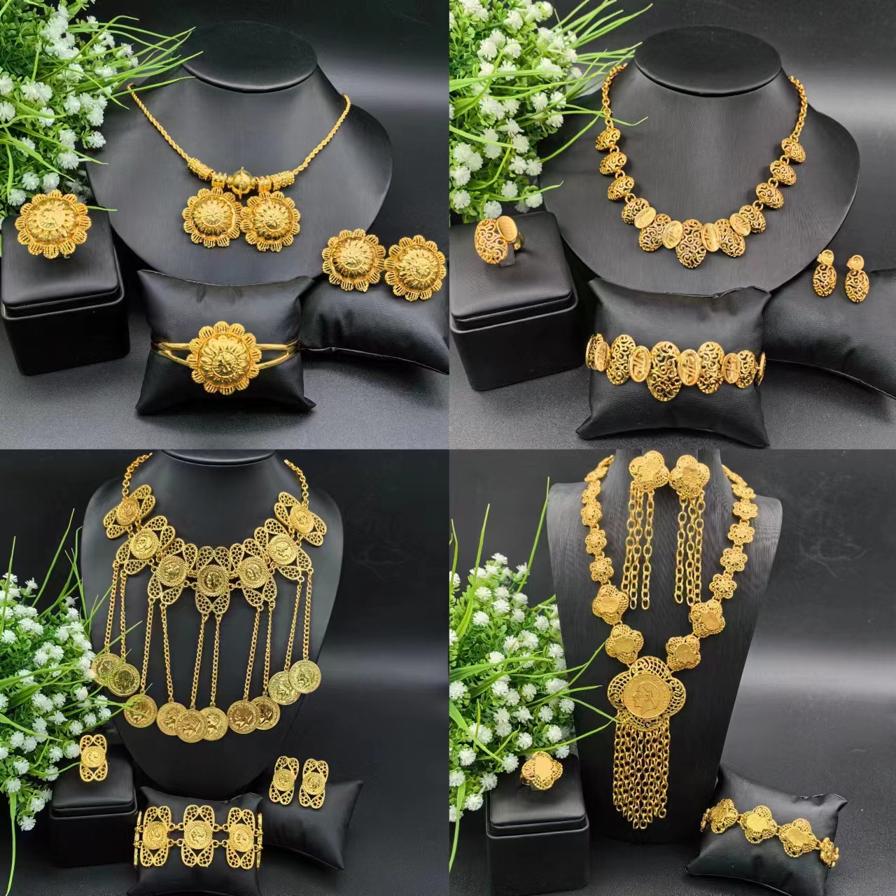 Middle Eastern Hot Selling Fashion Gold-Plated Necklace Earrings Jewelry Set African Dubai Bride Wedding Jewelry Accessories Wholesale