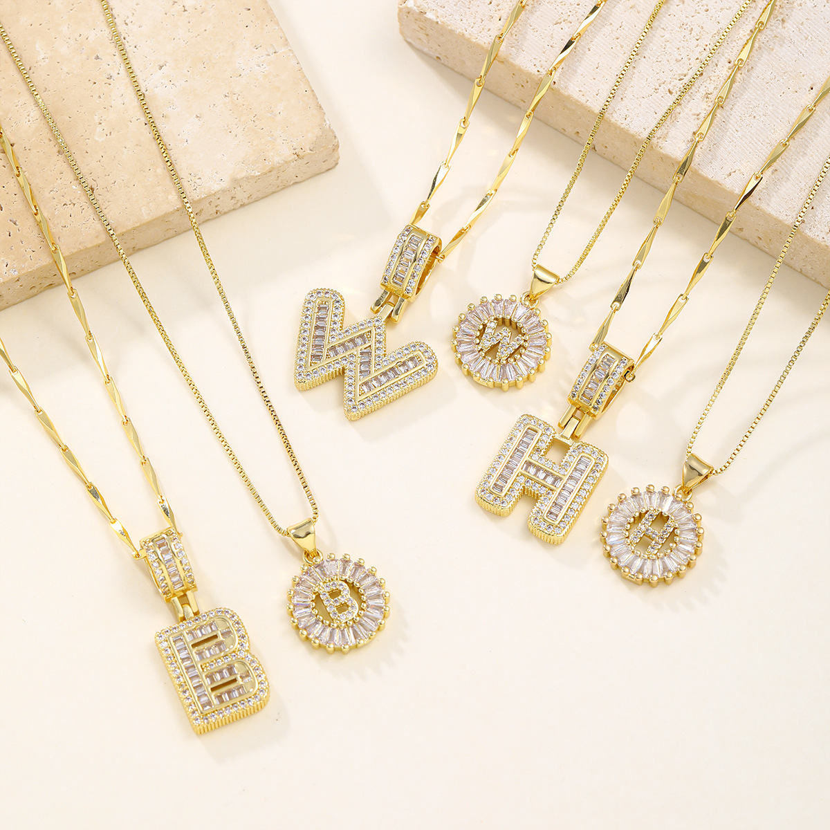 European and American Hot-Selling Rock Candy Full Diamond 26 English Alphabet Necklace Copper Inlaid Zircon Plated Real Gold Flower Letter Set Wholesale