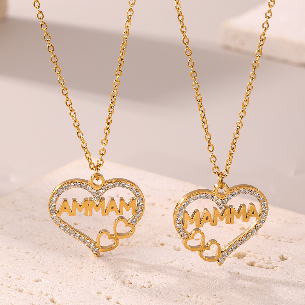 Mduo Europe and America Mama Love Zircon Letter Clavicle Necklace Bracelet Titanium Steel PVD Electroplated 18K True Gold suit
