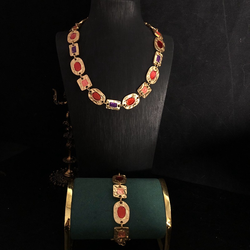 Western Middle Style Accessories Gold Plated Color Enamel Glaze Bracelet Necklace suit Exquisite All-match Woolen Chain Elegant