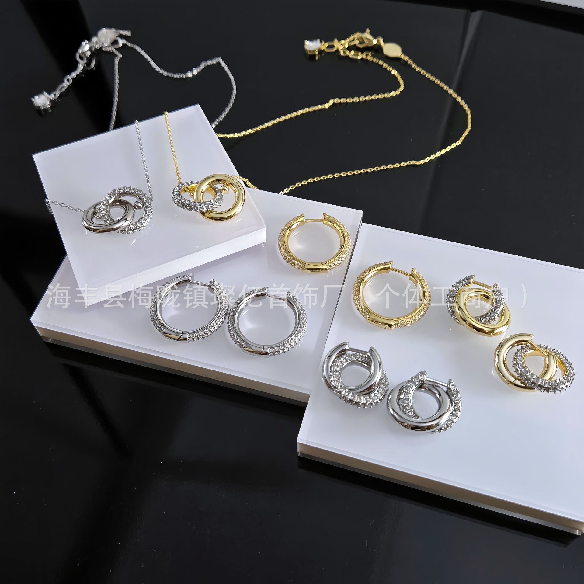 Shijia Dextera Double-Ring Necklace Imitation Crystal Pavé Swarovski Element Set Niche Exquisite Cross-Border Version