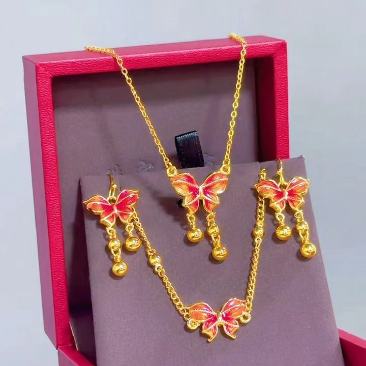Gold Colorful Butterfly Necklace Women's Smoky Rain Dream Butterfly Gradient Enamel Butterfly Ring Bracelet Earrings suit