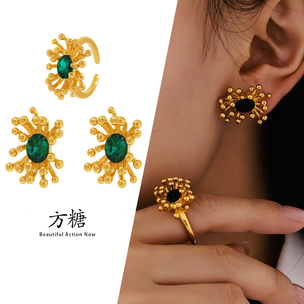Sugar Creative New 18K Plated Gold Earrings Distinctive Flower Design Zircon Ring Versatile Jewelry suit