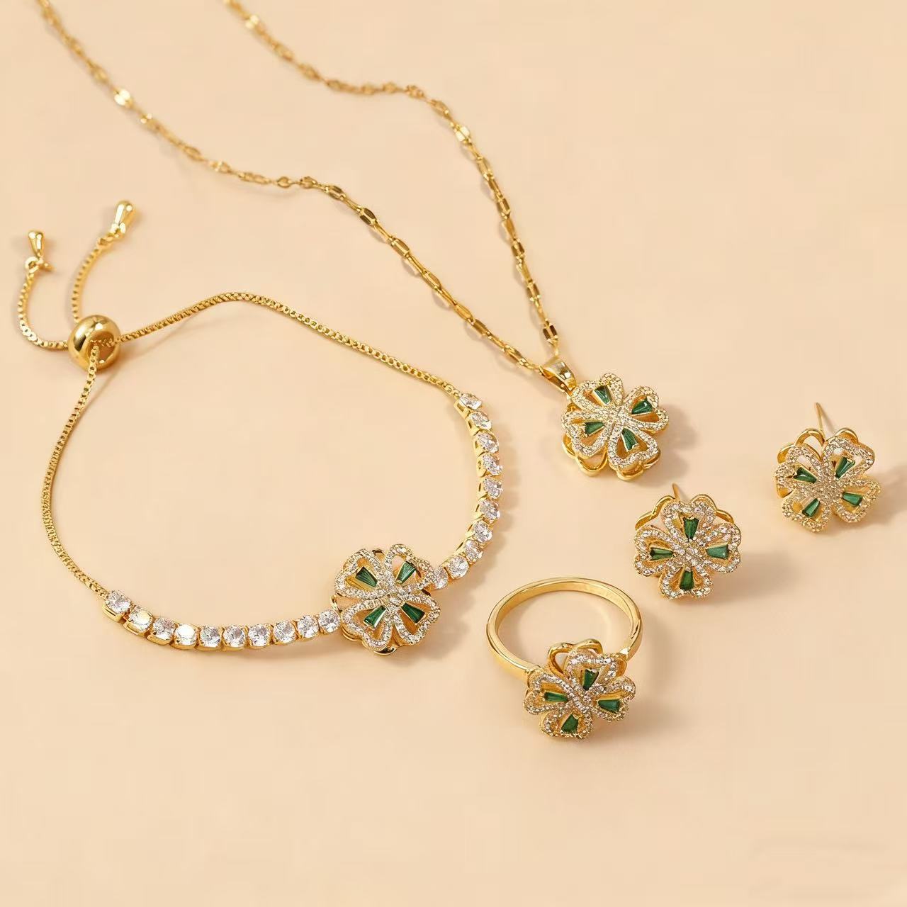 Necklace for Women Korean and Japanese Style Internet Celebrity Tiktok Rotatable Titanium Steel Necklace Women's Ring Earrings Four-Piece Set Zircon Clavicle Chain