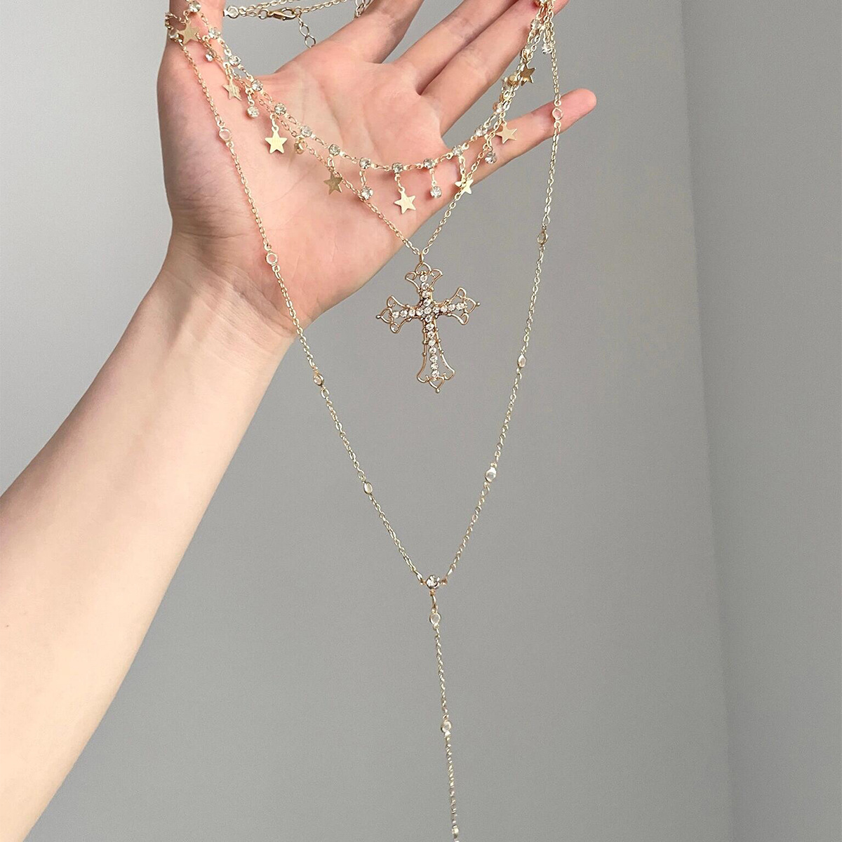 Diamond Cross Star Pendant Necklace Design Niche Clavicle Chain Stylish Cool Style Jewelry for Women High-End